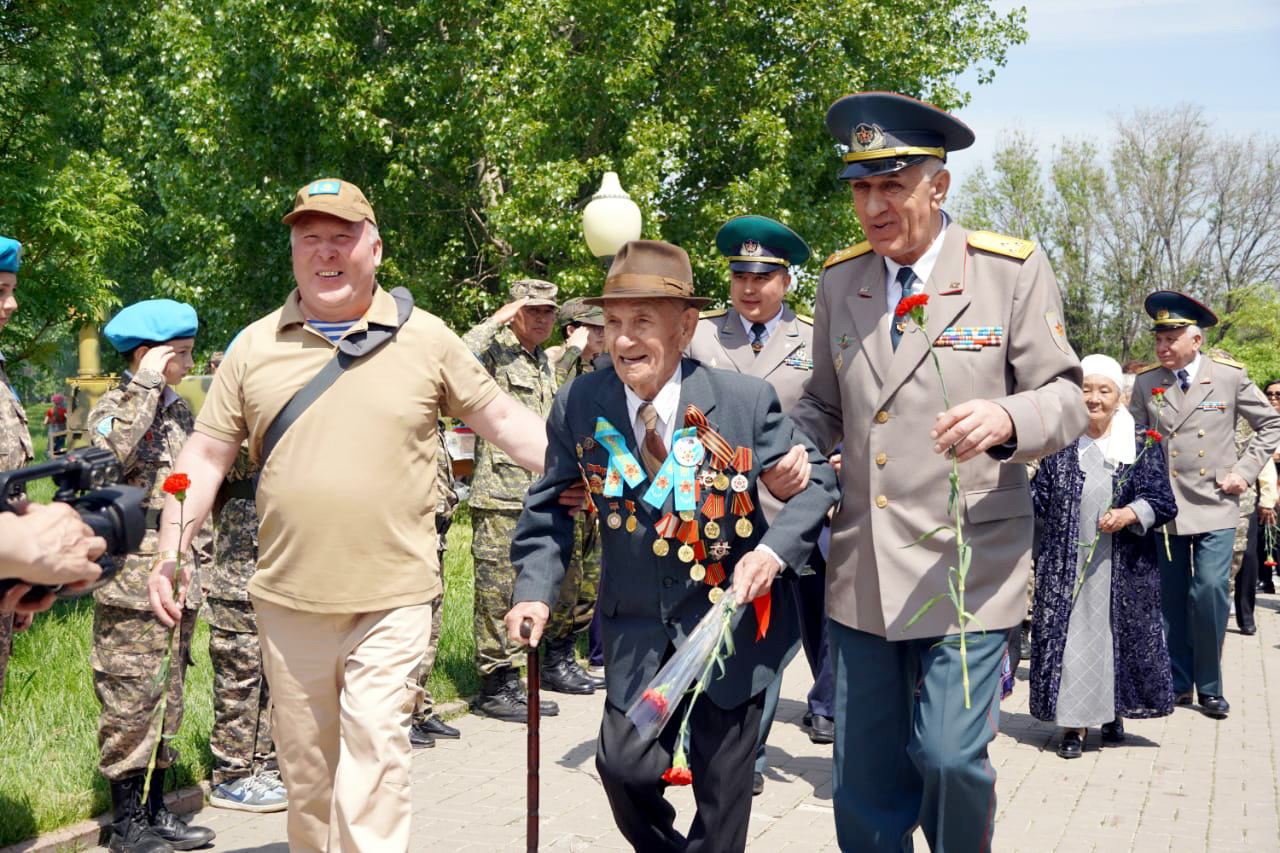 В канун празднования Дня Победы 8 мая в Алматы ОО "Союз офицеров Казахстана" и наш фонд при активном участии убеленных сединами ветеранов войны и тружеников тыла, при поддержке оркестра филиала Военно-патриотического центра МО РК, Военно-технической школы Алматы, городского военно-патриотического клуба "Жас Сарбаз" под руководством подполковника М.Канатова, школьников начальных классов школы-лицея №28 имени М.Маметовой города Алматы под руководством А.Кучербаевой, "Федерации Ушу-Таолу" Алматы под руководством Чинь Ли-Пин и С.Ким, военно-патриотического клуба "Айдын" под руководством майора А.Сулейменова, детского военно-патриотического клуба "Крейсер Киров" под руководством Б.Перимбет, волонтеров, представителей городских властей, общественности и бизнес-сообщества прошла ежегодная церемония возложения цветов у памятной стелы на кленовой аллее участников Великой войны в Парке имени Первого Президента Республики Казахстан.